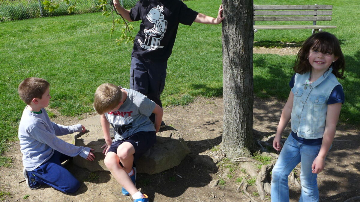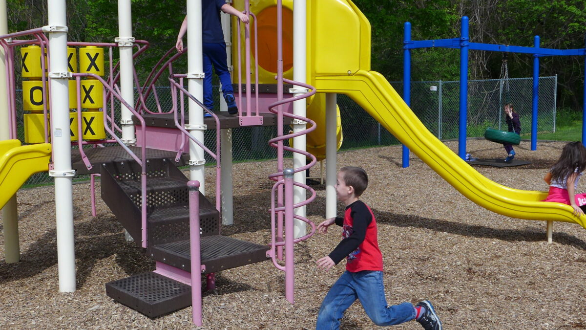 Jackson, Nathan, Glenn, and Gavin on the Monkey Bars and Exercise Equipment