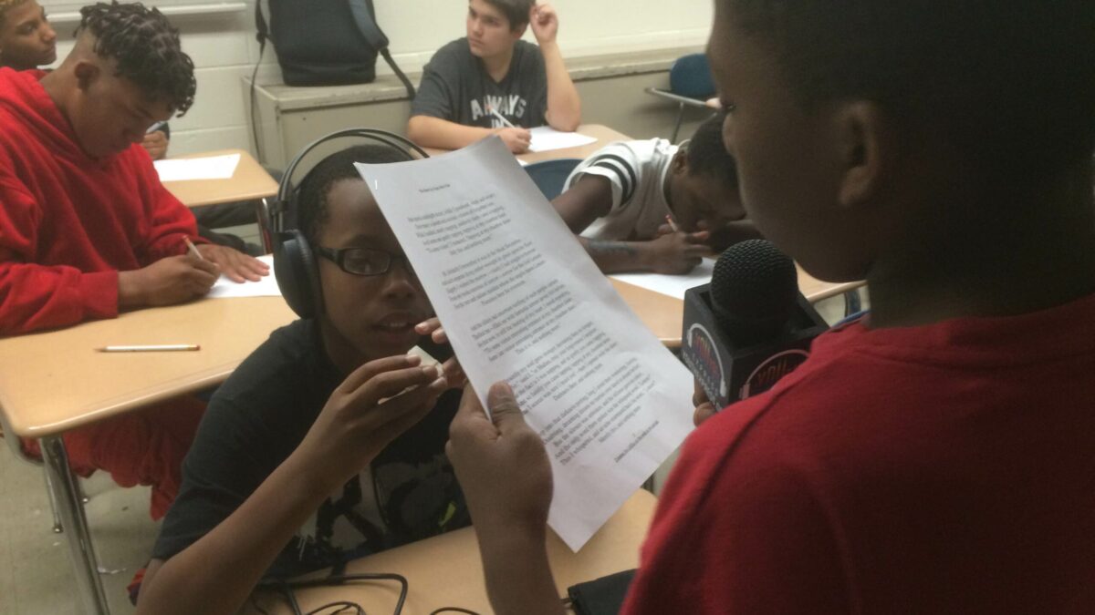 Middle school students at Woodland Hills, with Halloween fast approaching, took turns reciting the classic Edgar Allen Poe poem “The Raven.”