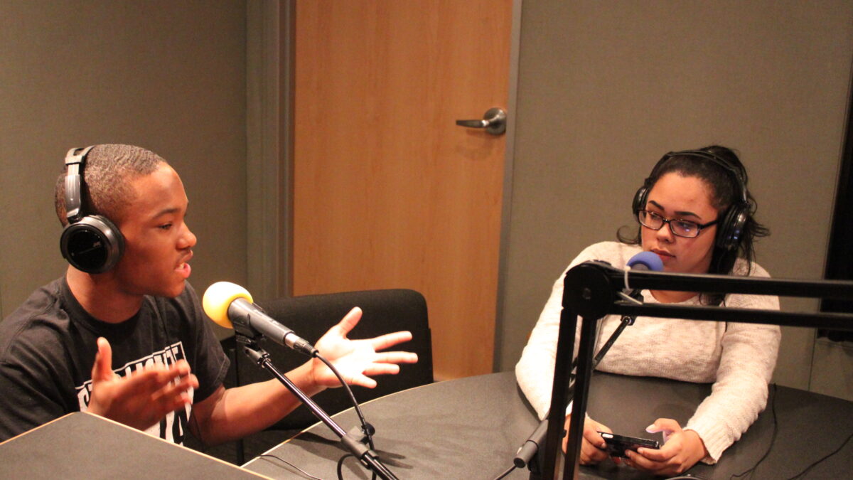 From 02/06/2016: Leon Blair (14, Beechview), Savannah Mynahan (17, Morningside), Cameron Brown (16, Beltzhoover), and Carlyle Stokes (17, Brookline) on Project Perspective: Bridging Community and Police Voices developed by Pittsburgh Brashear’s Students in Action.